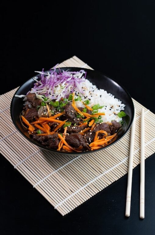 Inspirado no famoso churrasco coreano bovino. Fatias finas de um corte bovino bem macio, cenoura, cebola e cebolinha, marinadas em um molho agridoce que dá um toque marcante a carne , finalizado com óleo de gergelim, gergelim e cebolinha.
