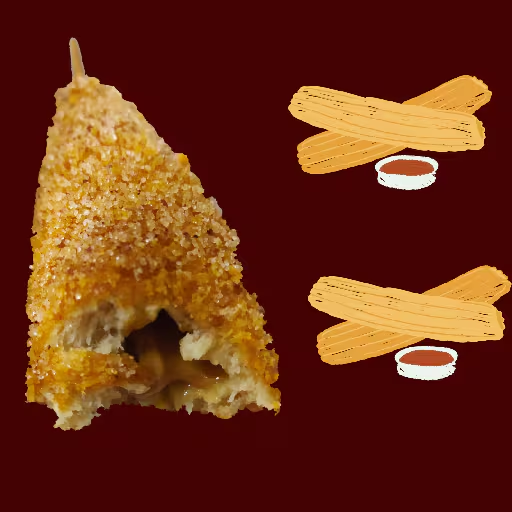Doce de leite da casa no palito empanado em uma massa de pão coberta com farinha panko. Depois de frito, é melado no açúcar e canela.